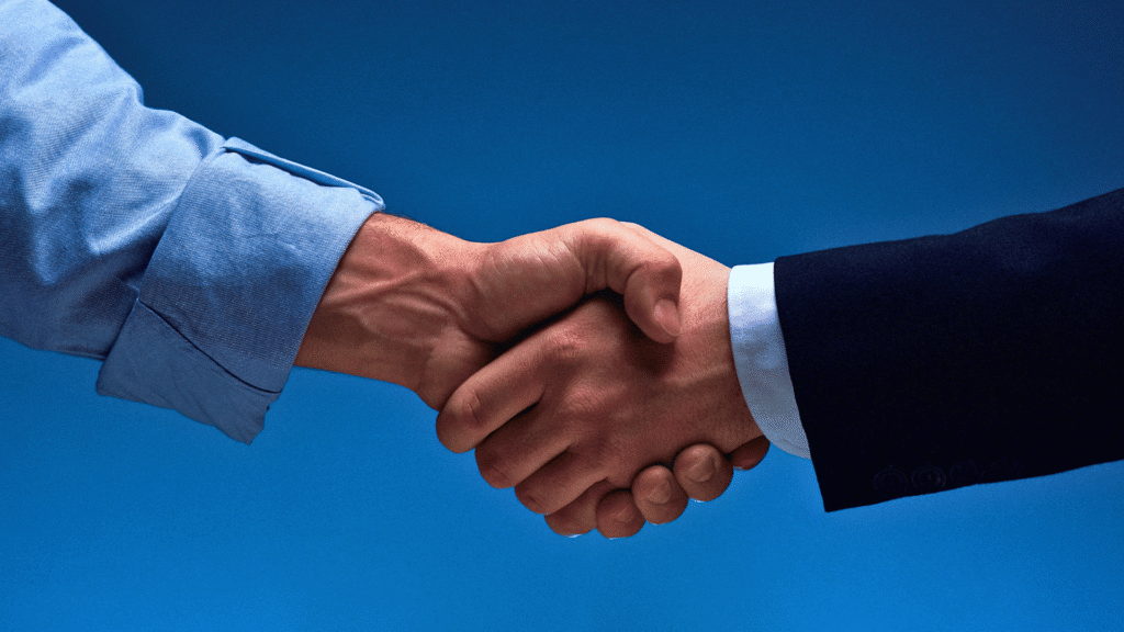 • الأسلوب الصحيح: مد يدك بثبات، حافظ على تواصل بصري مباشر، واضغط بلطف (وليس بقوة شديدة). يجب أن تكون المصافحة قصيرة وحازمة ومفعمة بالود والاحترام.
