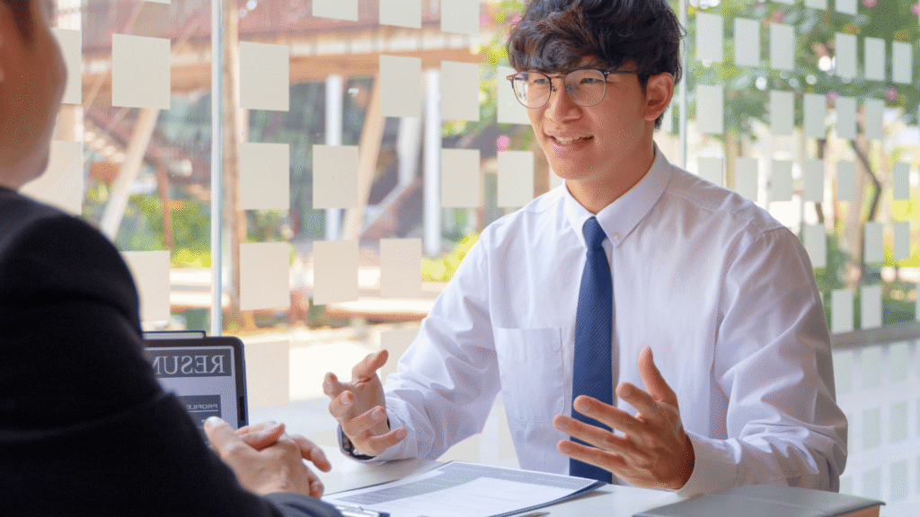 • التعبير الصحيح: عند سؤالك “هل لديك أي أسئلة؟”، أظهر اهتمامًا حقيقيًا من خلال ميلك البسيط للأمام وتعبيرات وجهك المهتمة، حتى لو كان سؤالك الوحيد هو “ما هي الخطوة التالية في عملية التوظيف؟”.